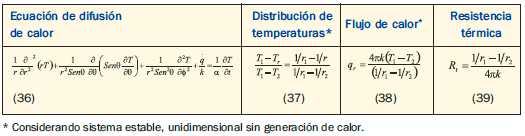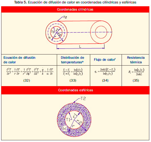 La ecuación de difusión de calor se puede transformar en coordenadas cilíndricas y esféricas para geometrías particulares con los siguientes resultados: