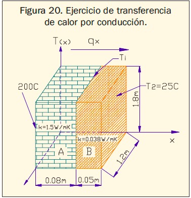 Ejemplo: Determine el calor transferido por las paredes A y B, y la temperatura de interfase Ti para la configuración geométrica y condiciones que aparecen en la figura 20.