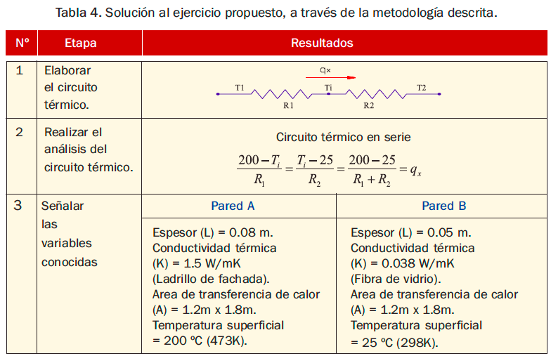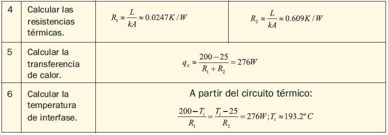 De tal manera que la conducción estable se puede solucionar a partir de un circuito térmico que puede presentar resistencias en serie y/o paralelo de acuerdo con el área compartida de transferencia de calor.