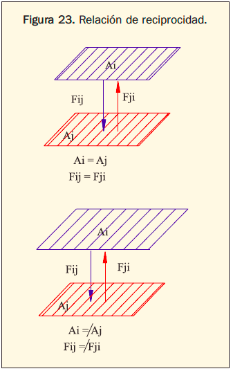 1. Reciprocidad. Los factores de visión Fij y Fji no son iguales entre sí, a menos que las áreas de las dos superficies lo sean (figura 23).