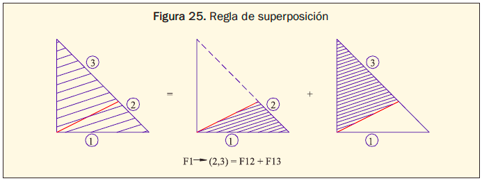 3. Superposición. El factor de visión desde una superficie i hacia una superficie j es igual a la suma de los factores de visión desde la superficie i hacia las partes de la superficie j (figura 25).