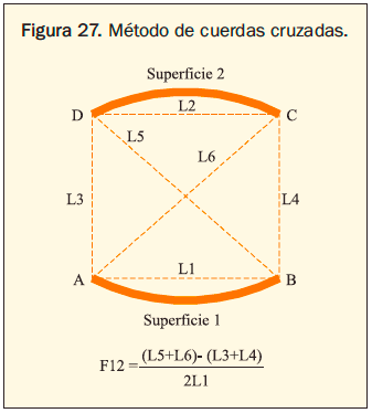 Métodos adicionales: Un método útil para determinar los factores de forma es el método de las cuerdas cruzadas desarrollado por H.C Hotel en la década de 19501 y representado en la figura 27.